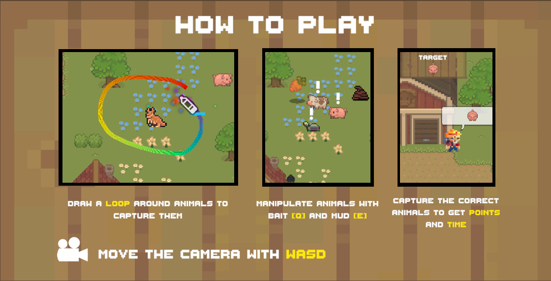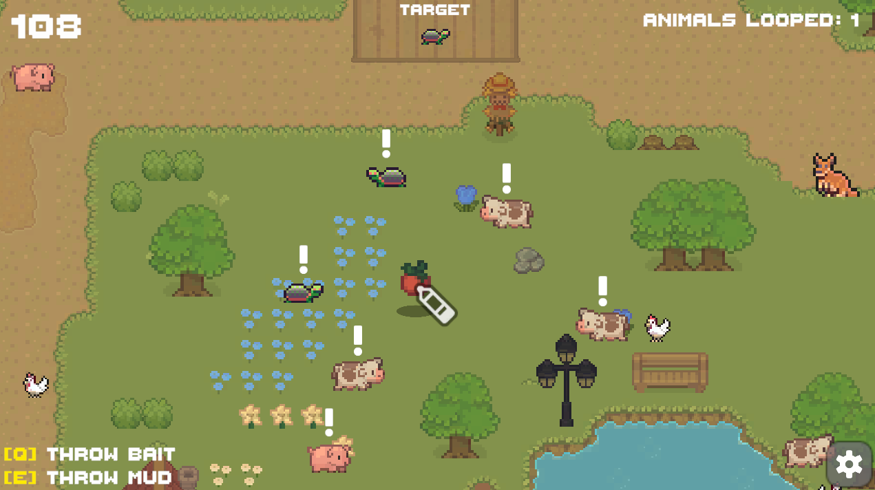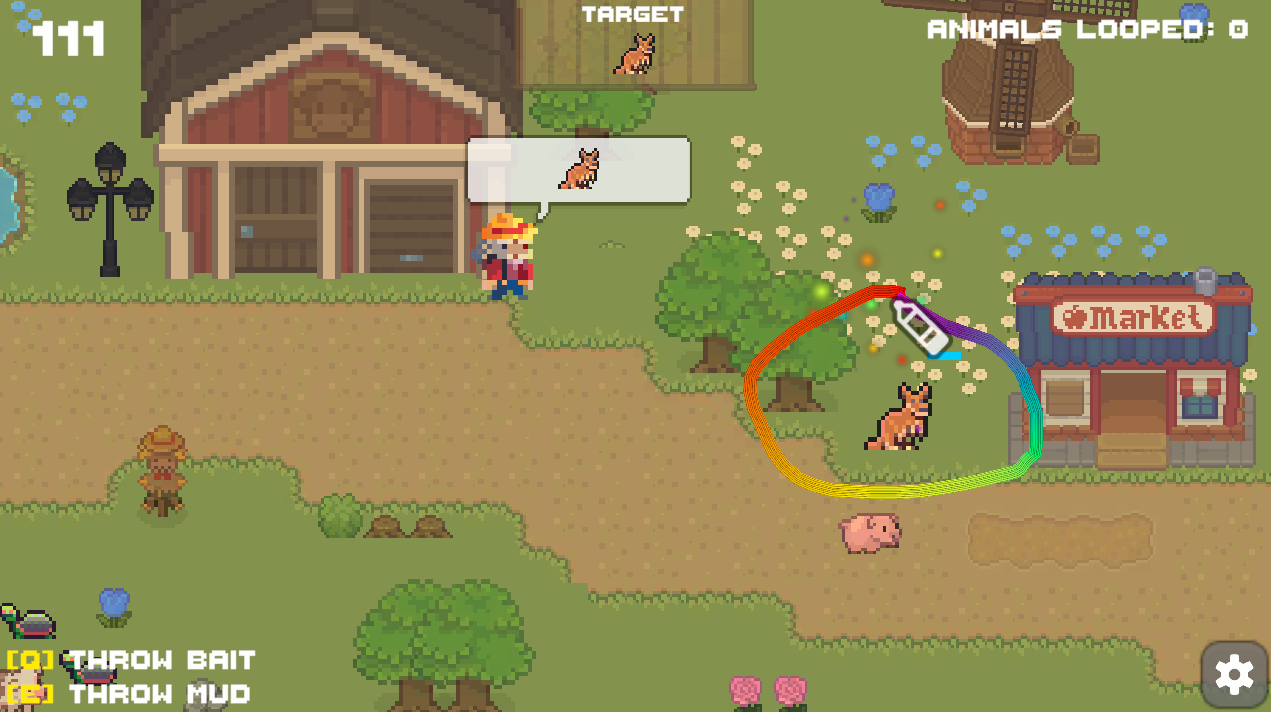 The farmer's animals are on the lose! Help him round them up by drawing a loop around the animals to lasso them. Use mud and bait to ensure you lasso the correct animal at the farmer's request.